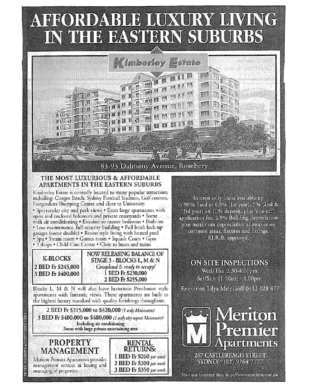 Despite environmental concerns, Meriton secured approval in 1995 to build around 750 apartments on the 70,000 square metre site. Known as Kimberley Estate, it became the company’s largest project at the time. The project illustrated the challenges of balancing urban growth with biodiversity protection and highlights the importance of strong environmental oversight in planning decisions.